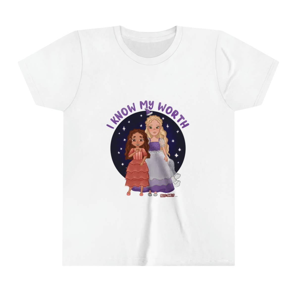 Kids will love this Self on the Shelf short sleeve tee. This lightweight (4.0 oz) side-seamed shirt maximizes comfort all day long. The ring-spun cotton makes it perfect for displaying Gracie Mae and Helen’s image from the book. Side seams keep the garment’s shape. The shoulders have tape for longer fitting. The collar is extra elastic due to ribbed knitting.