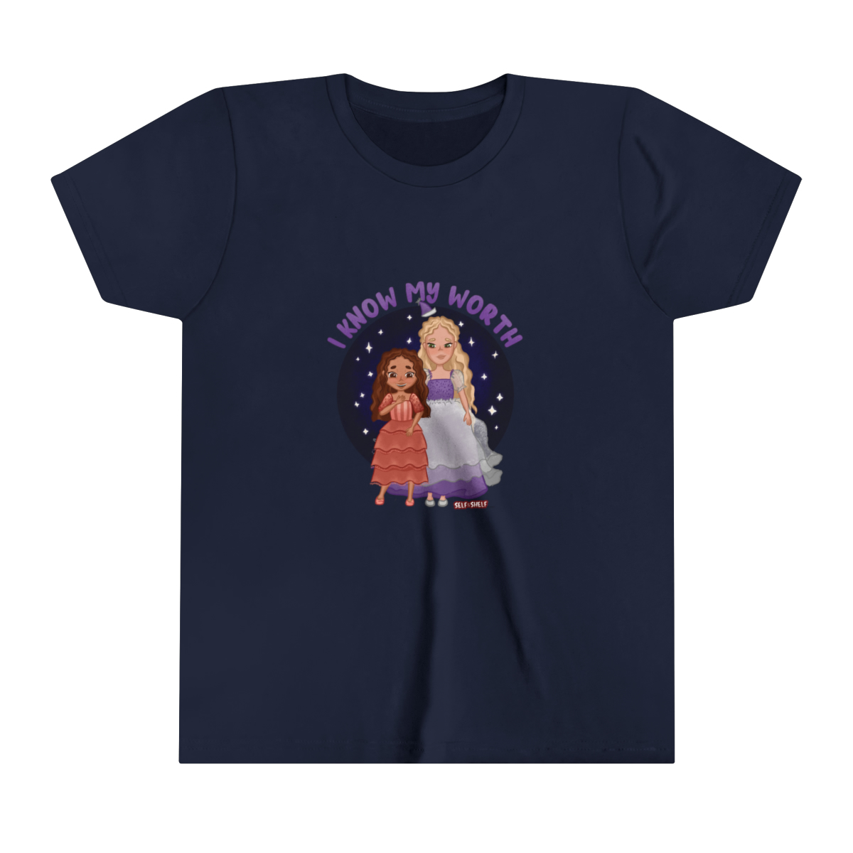 Kids will love this Self on the Shelf short sleeve tee. This lightweight (4.0 oz) side-seamed shirt maximizes comfort all day long. The ring-spun cotton makes it perfect for displaying Gracie Mae and Helen’s image from the book. Side seams keep the garment’s shape. The shoulders have tape for longer fitting. The collar is extra elastic due to ribbed knitting.